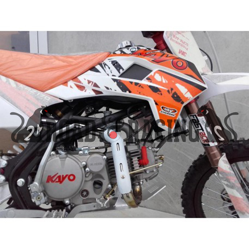 Tipo di motore Monocilindrico, 4 tempi, SOHC, Raffreddamento ad aria, Manuale, 4 marce 169cc cilindrata Alesaggio * Corsa 62 millimetri * 56 millimetri Rapporto di compressione 10.3: 1 Max. Potenza 11,8 / 8500 kw / rpm Max. Coppia 15/7000 N.m / r / min Carburatore standard del sistema di alimentazione Avvio di Kick Start Catena di trasmissione (16T-41T KMC428H) Accensione CDI (condensatore Drode Ignite) Chasis Frame Design e processo professionali di KAYO Ammortizzatore forcella anteriore 730mm regolabile Ammortizzatore forcella posteriore 360mm regolabile Freno a disco di frenatura anteriore Freno a disco di frenatura posteriore Cerchione anteriore in acciaio 1.6 * 17 Cerchione posteriore in acciaio 1,85 * 14 Pneumatico anteriore 70 / 100-17 Pneumatico posteriore 90 / 100-14 Dimensioni e capacità Dimensioni del veicolo 1760 * 780 * 1100mm interasse 1.210 millimetri Altezza seduta 870 mm Altezza libera dal suolo 330mm Peso a secco 74 kg Capacità combustibile 5,5 L Dimensioni imballo 1560 * 380 * 735 mm